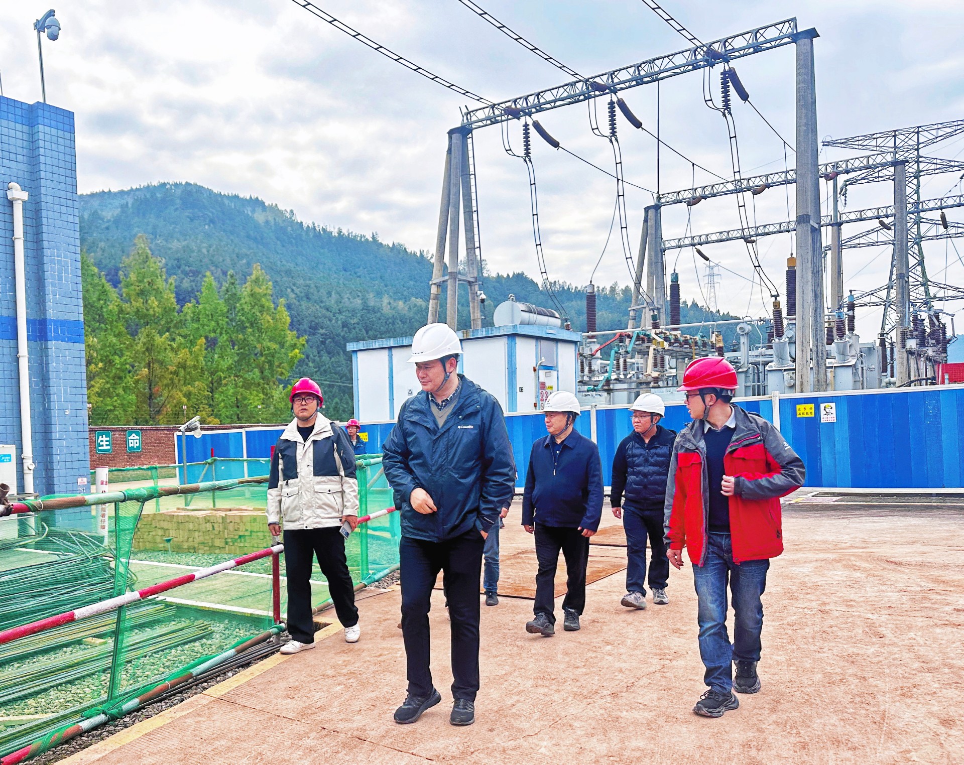 吴平一行深入通江兴隆风电项目220千伏送出工程、升压站、A标段建设现场,重点关注施工难点,紧盯吊装、浇筑等关键环节。通过现场问询、实地察看等方式,全面掌握项目人员配备、物资保障、安全生产、质量进度等总体情况。