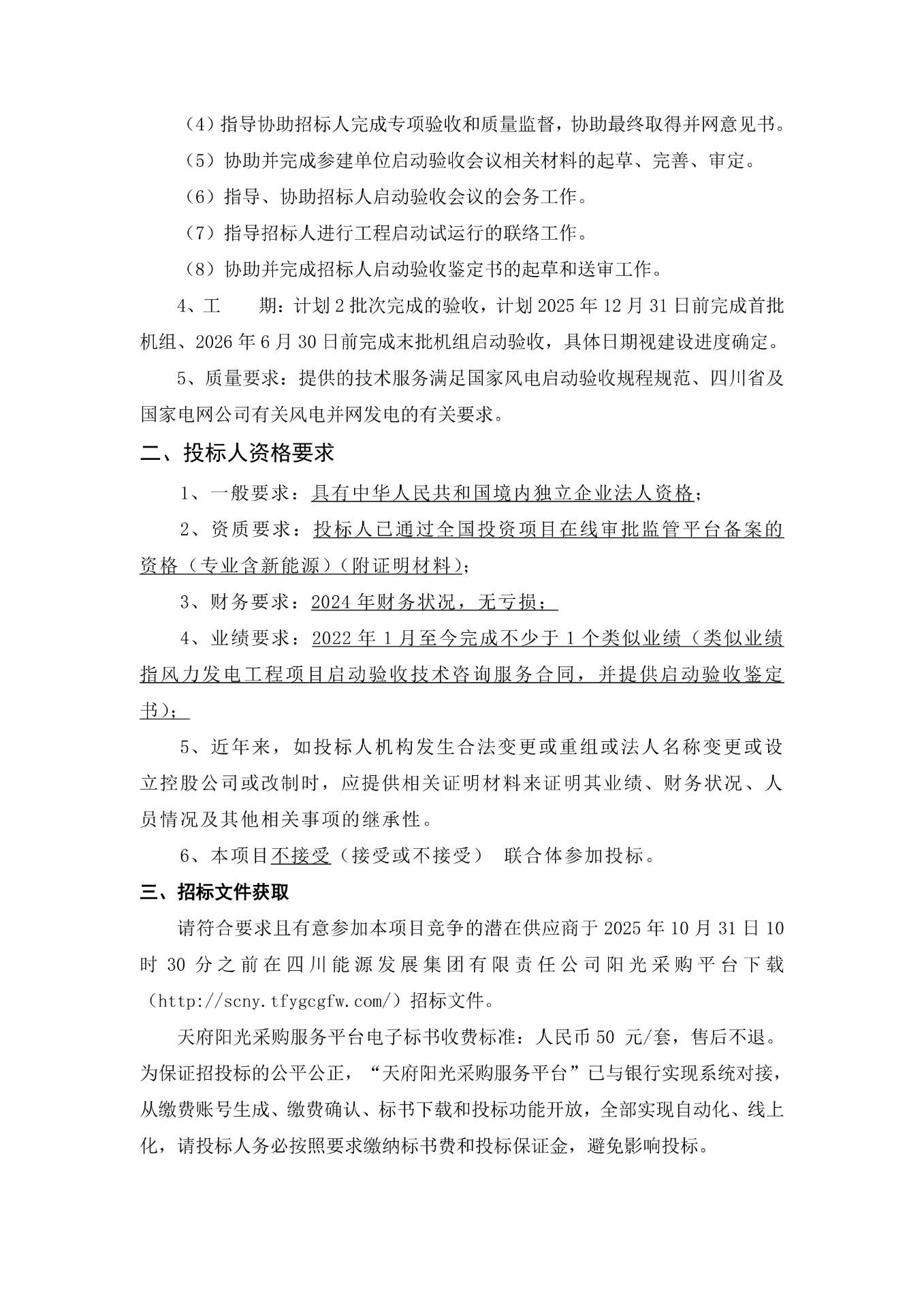 5、质量要求:提供的技术服务满足国家风电启动验收规程规范、四川省及国家电网公司有关风电并网发电的有关要求。