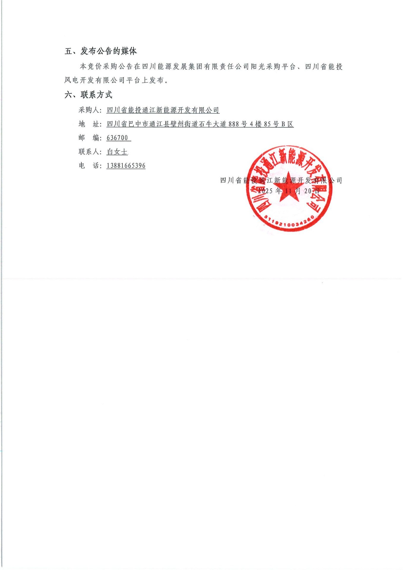 本竞价采购公告在四川能源发展集团有限责任公司阳光采购平台、四川省能投风电开发有限公司平台上发布。
