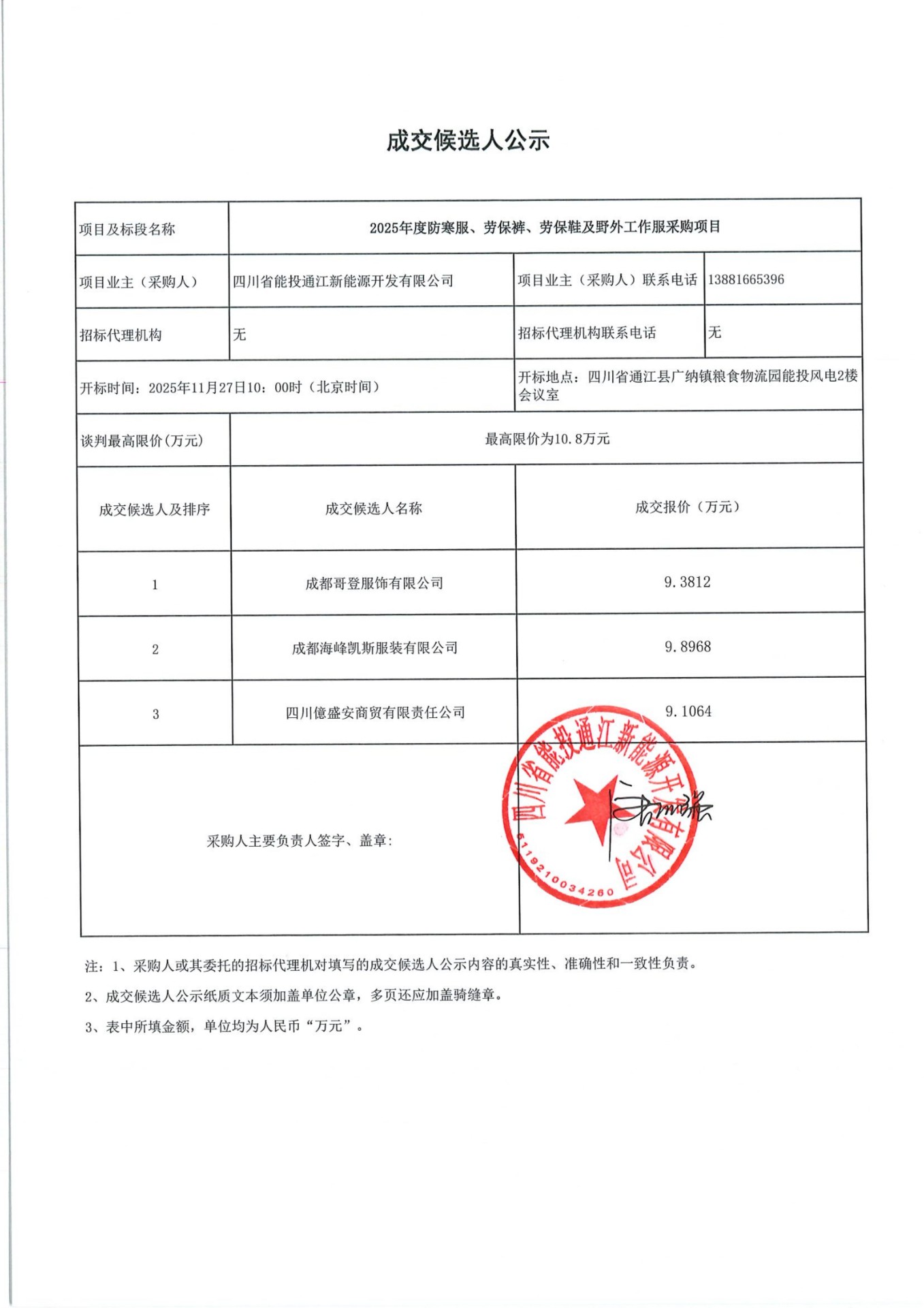 上一条:四川省能投通江新能源开发有限公司关于巴中通江兴隆风电项目运行期沉降、倾斜观测服务项目的成交候选人公示