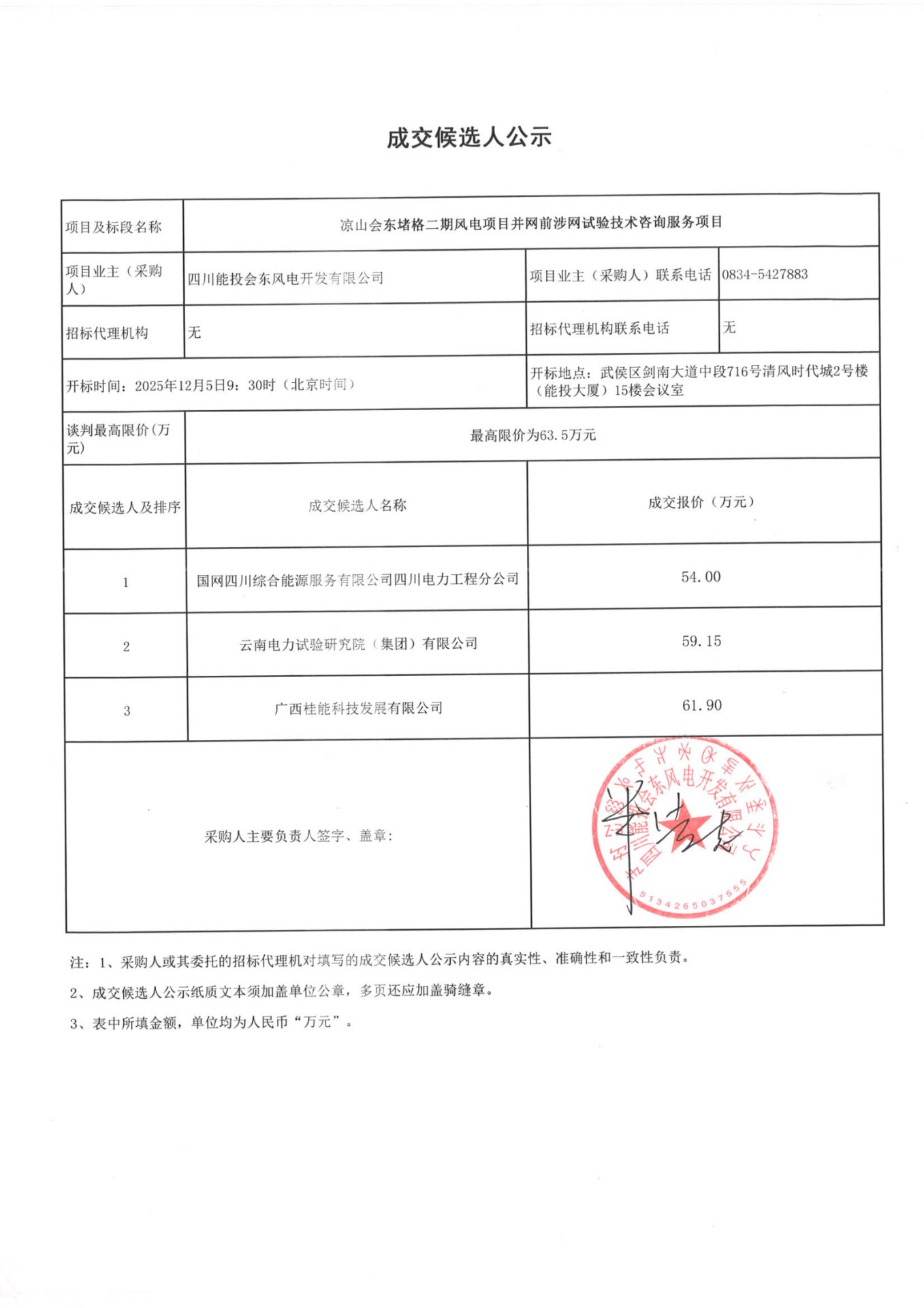 下一条:四川能投会东风电开发有限公司关于凉山会东淌塘三期风电项目并网前涉网试验技术咨询服务项目的成交候选人公示