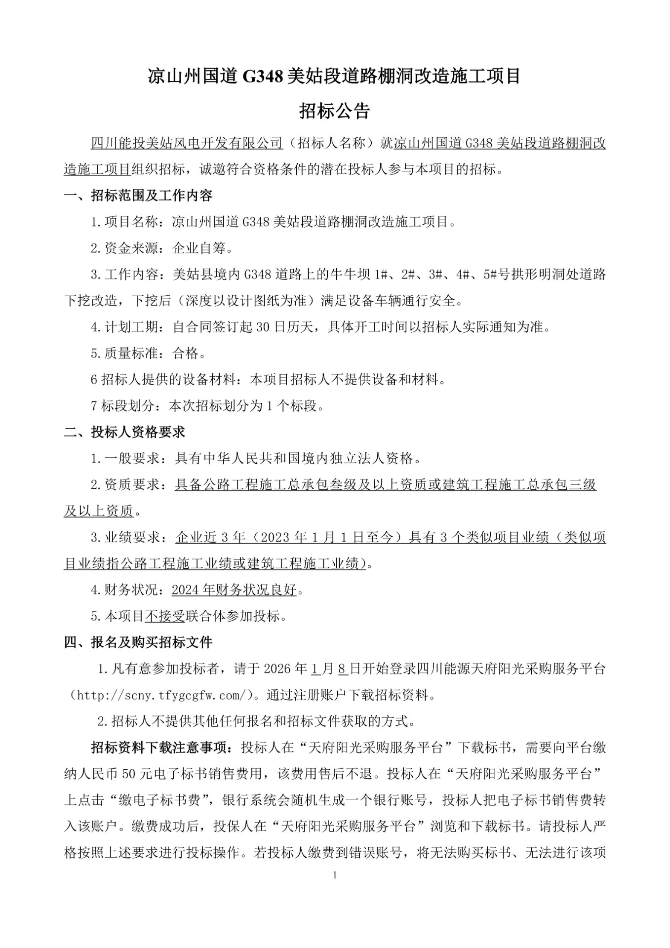 1.项目名称:凉山州国道G348美姑段道路棚洞改造施工项目。
