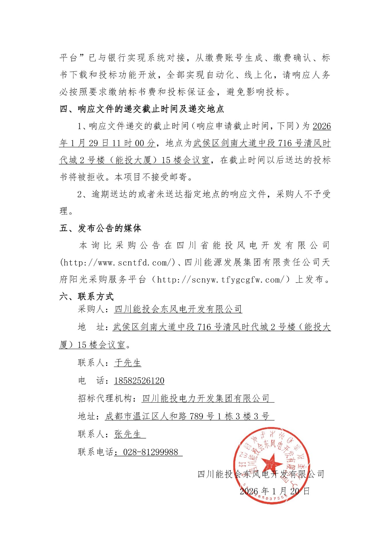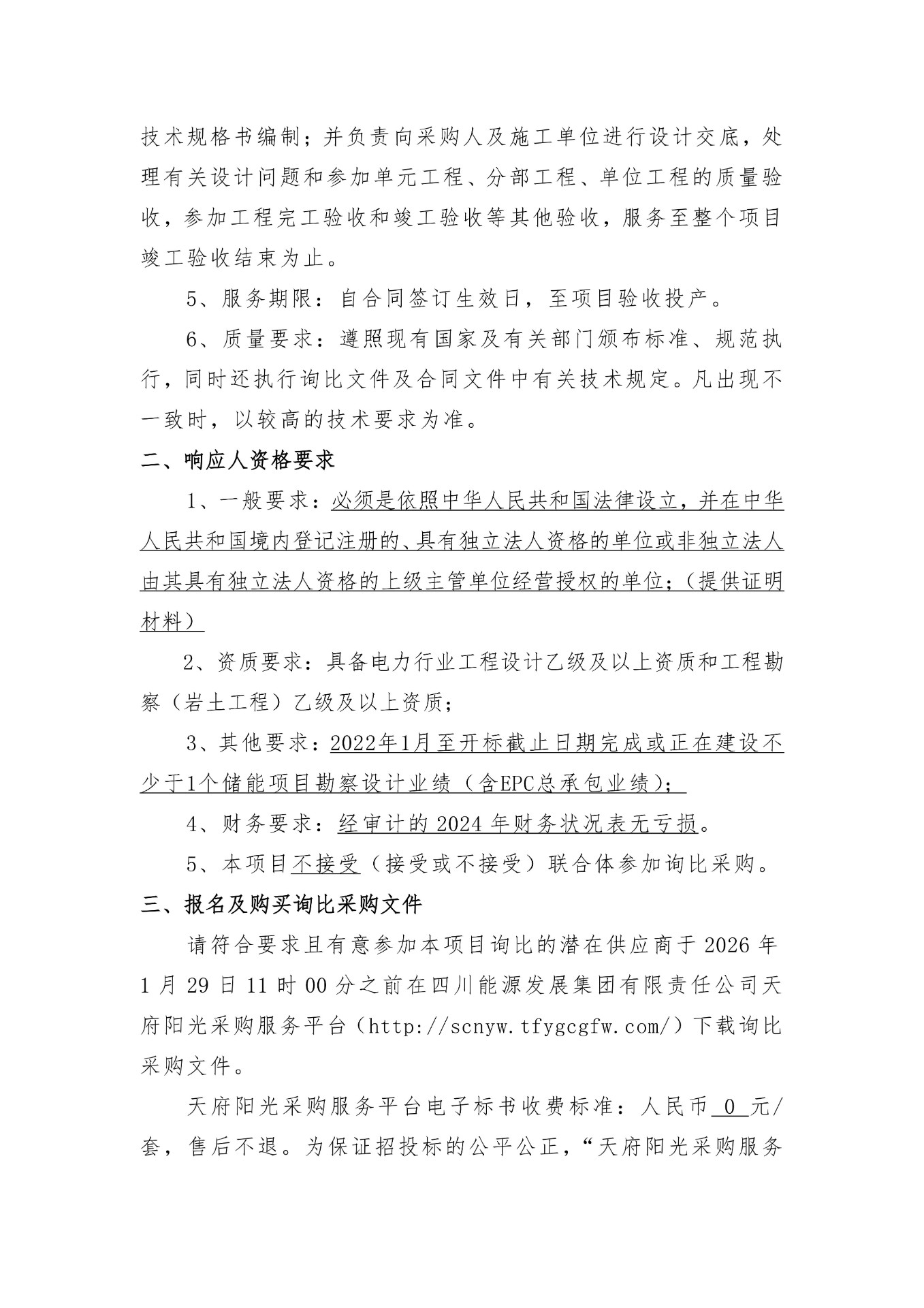 请符合要求且有意参加本项目询比的潜在供应商于2026年1月29日11时00分之前在四川能源发展集团有限责任公司天府阳光采购服务平台(http://scnyw.tfygcgfw.com/)下载询比采购文件。
