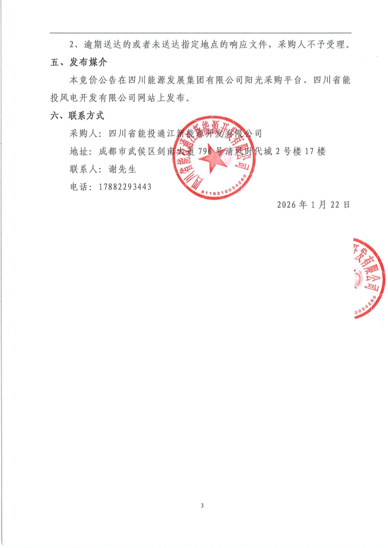 本竞价公告在四川能源发展集团有限公司阳光采购平台、四川省能投风电开发有限公司网站上发布。
