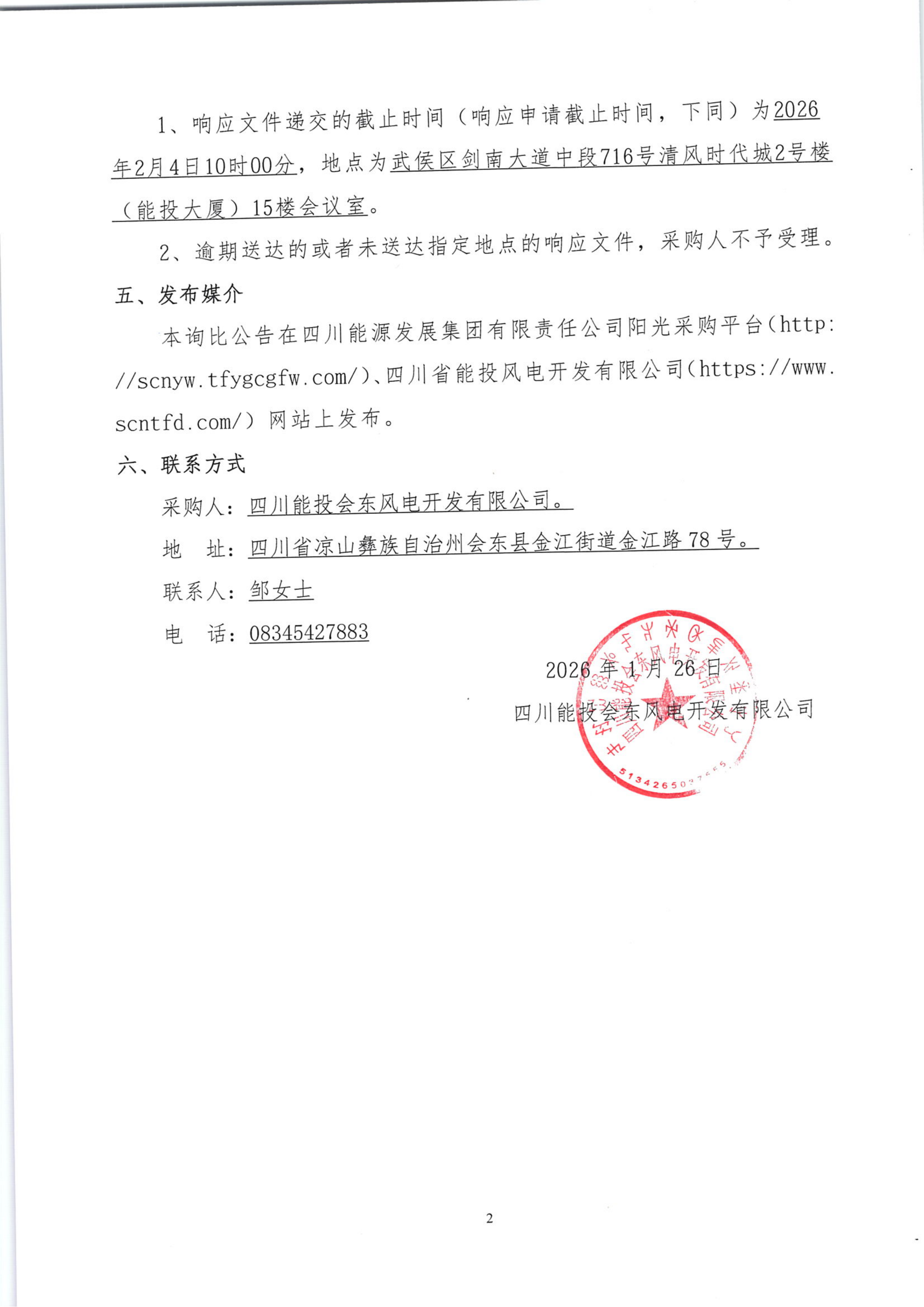 请符合要求且有意参加本项目的潜在供应商于2026年2月4日10时00分之前在四川能源发展集团有限公司阳光采购平台(http://scny.tfygcgfw.com/)下载询比采购文件。