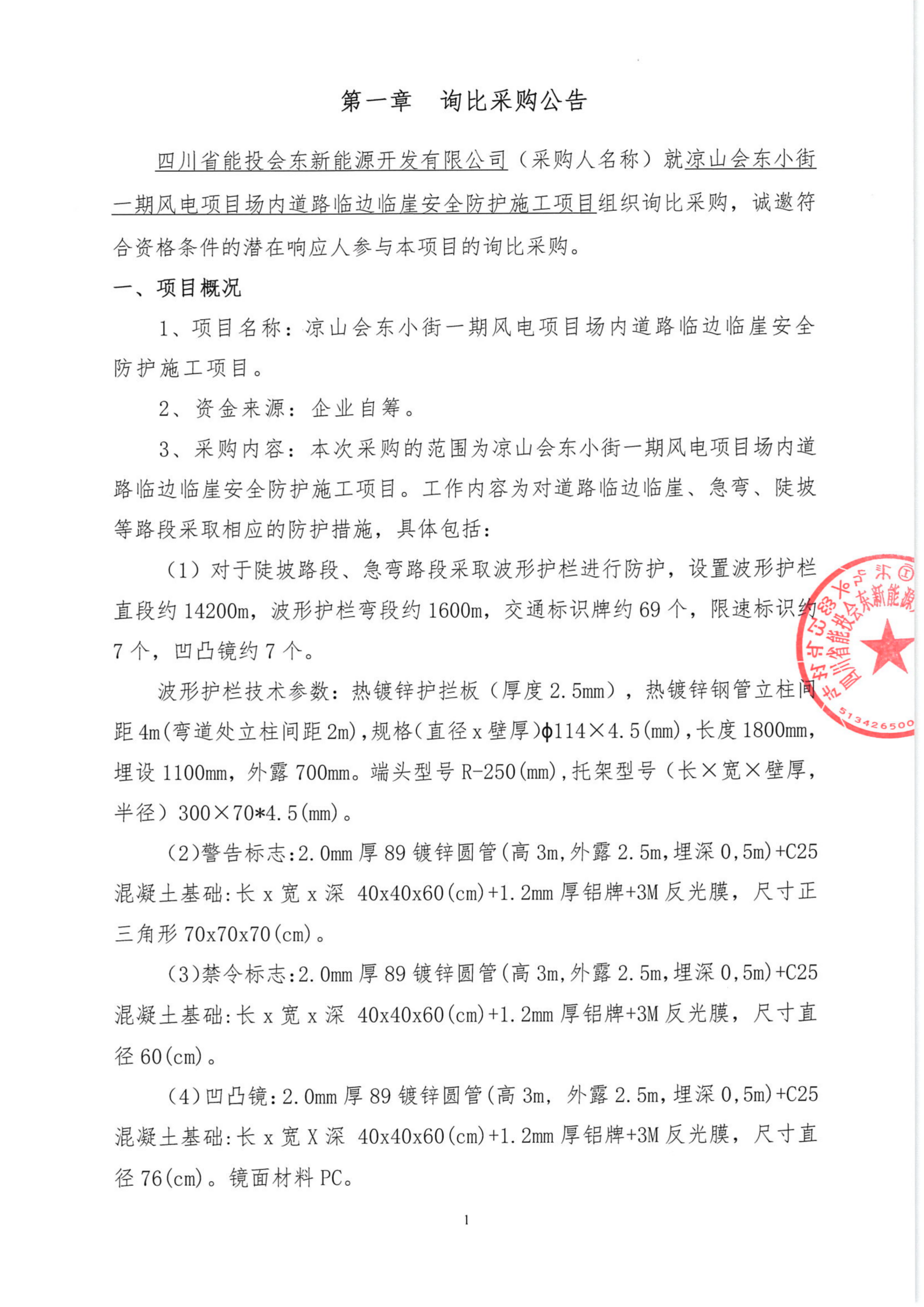 四川省能投会东新能源开发有限公司(采购人名称)就凉山会东小街一期风电项目场内道路临边临崖安全防护施工项目组织询比采购,诚邀符合资格条件的潜在响应人参与本项目的询比采购。