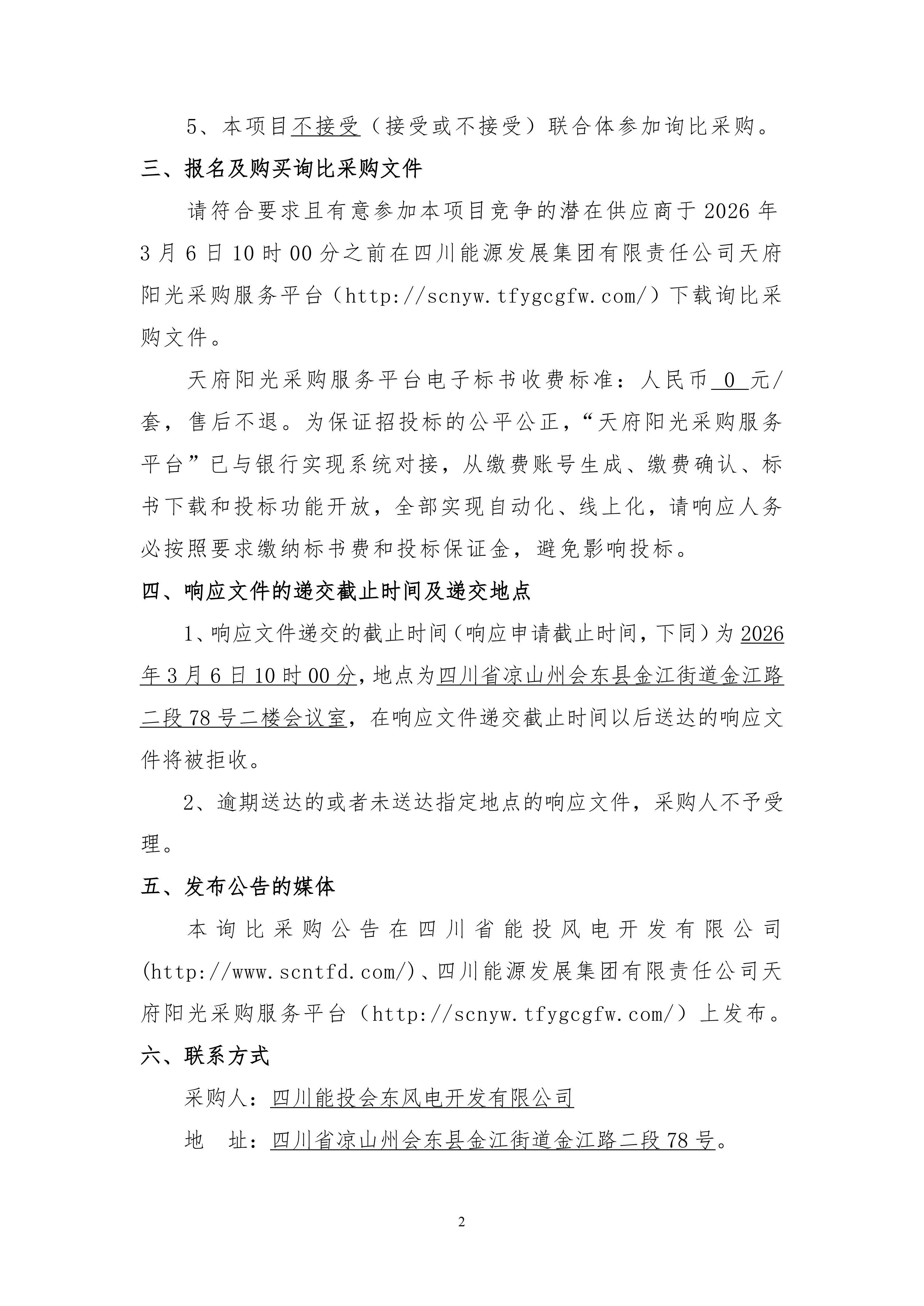 请符合要求且有意参加本项目竞争的潜在供应商于2026年3月6日10时00分之前在四川能源发展集团有限责任公司天府阳光采购服务平台(http://scnyw.tfygcgfw.com/)下载询比采购文件。