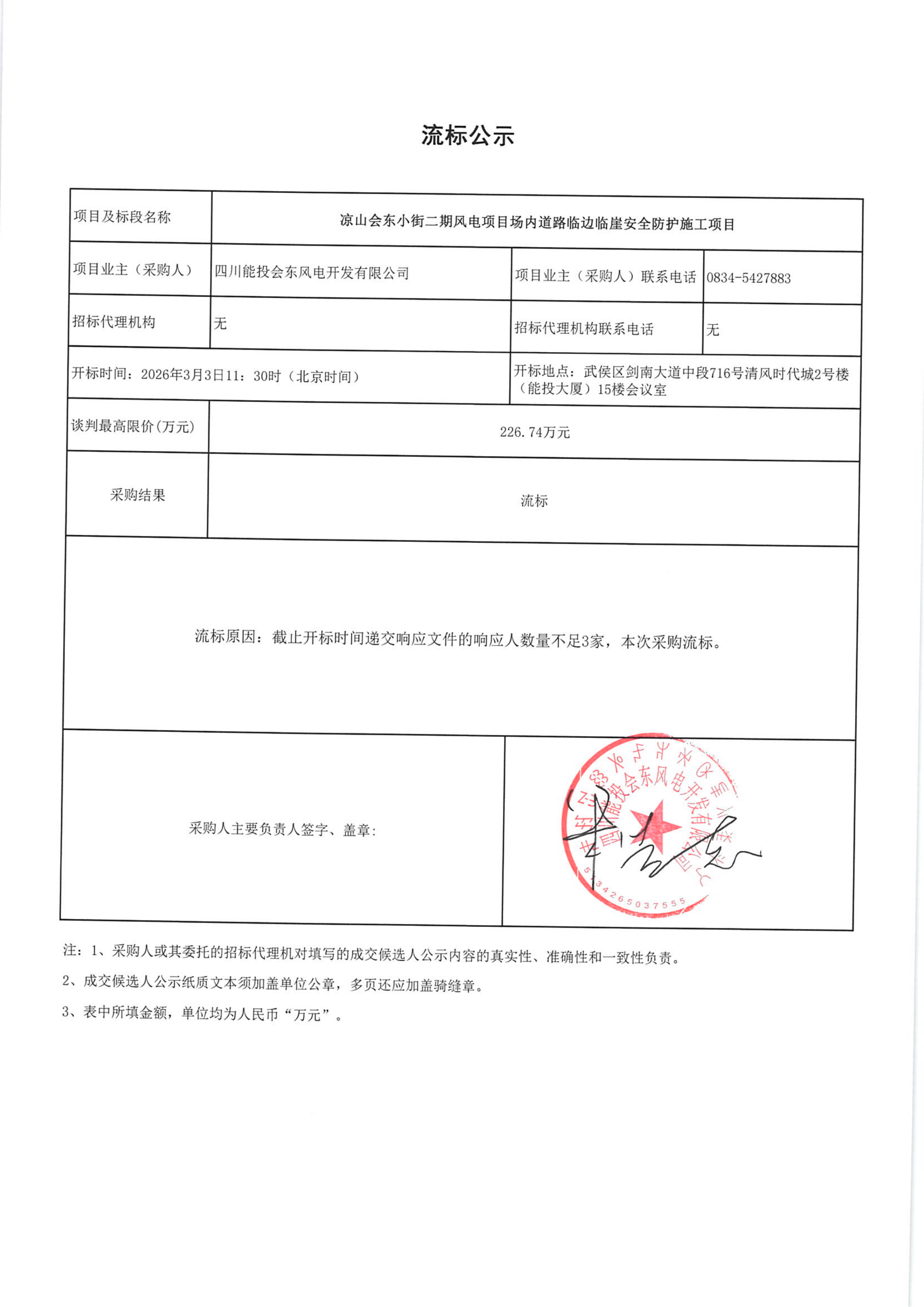 下一条:四川省能投会东新能源开发有限公司关于凉山会东淌塘二期风电项目场内道路临边临崖安全防护施工项目的成交候选人公示