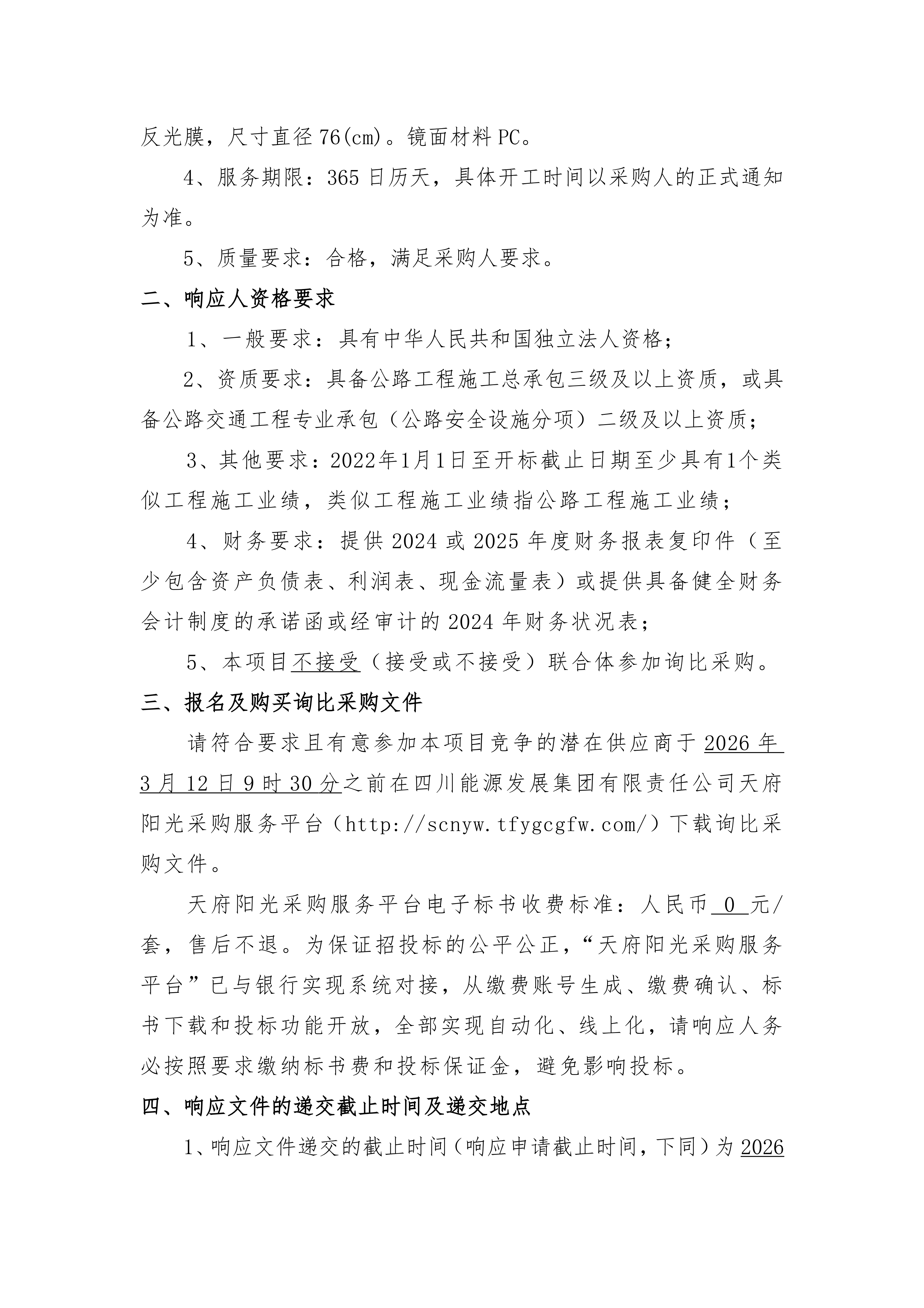 请符合要求且有意参加本项目竞争的潜在供应商于2026年3月12日9时30分之前在四川能源发展集团有限责任公司天府阳光采购服务平台(http://scnyw.tfygcgfw.com/)下载询比采购文件。
