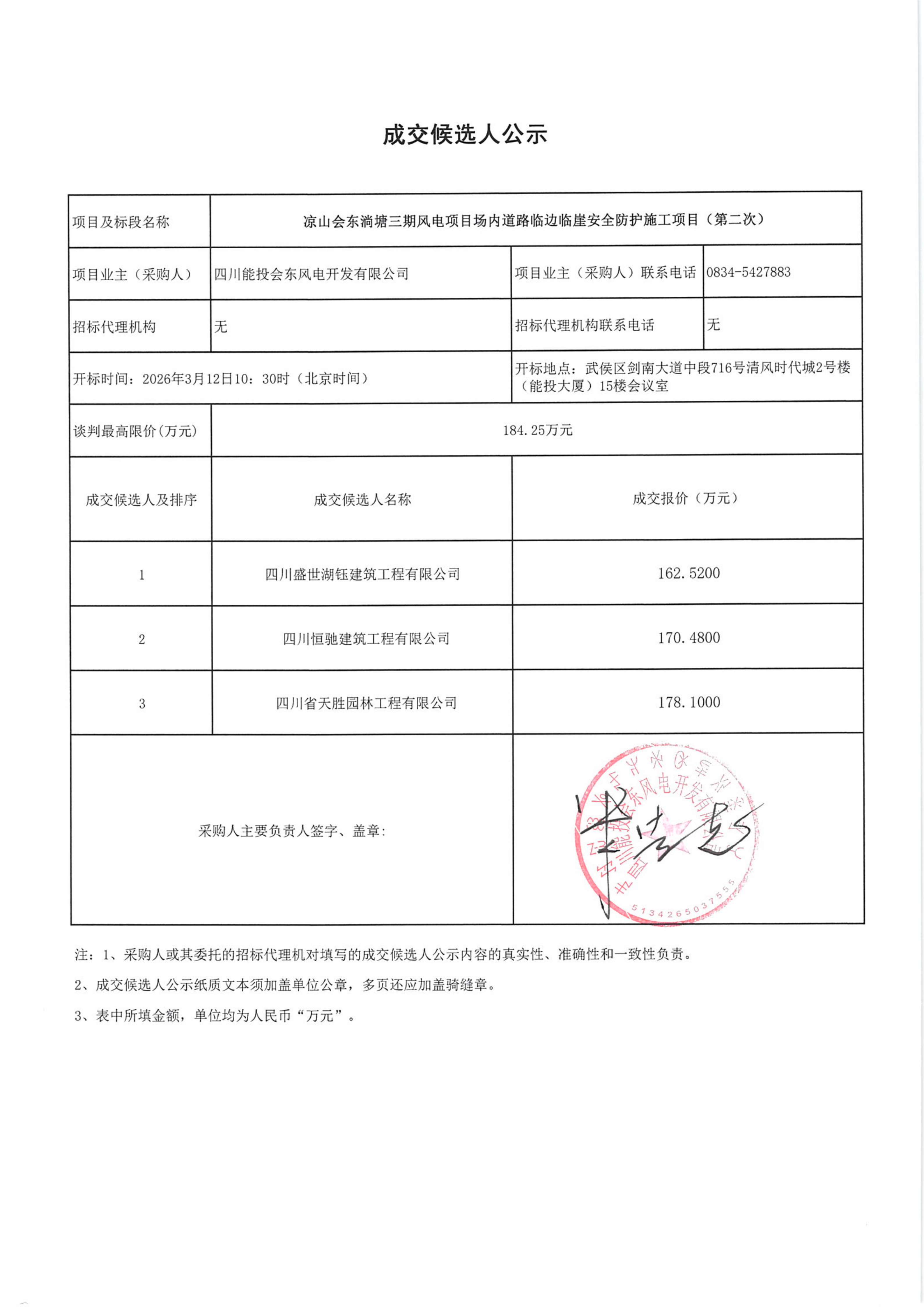 下一条:四川能投会东风电开发有限公司关于凉山会东小街二期风电项目场内道路临边临崖安全防护施工项目 (第二次)的成交候选人公示