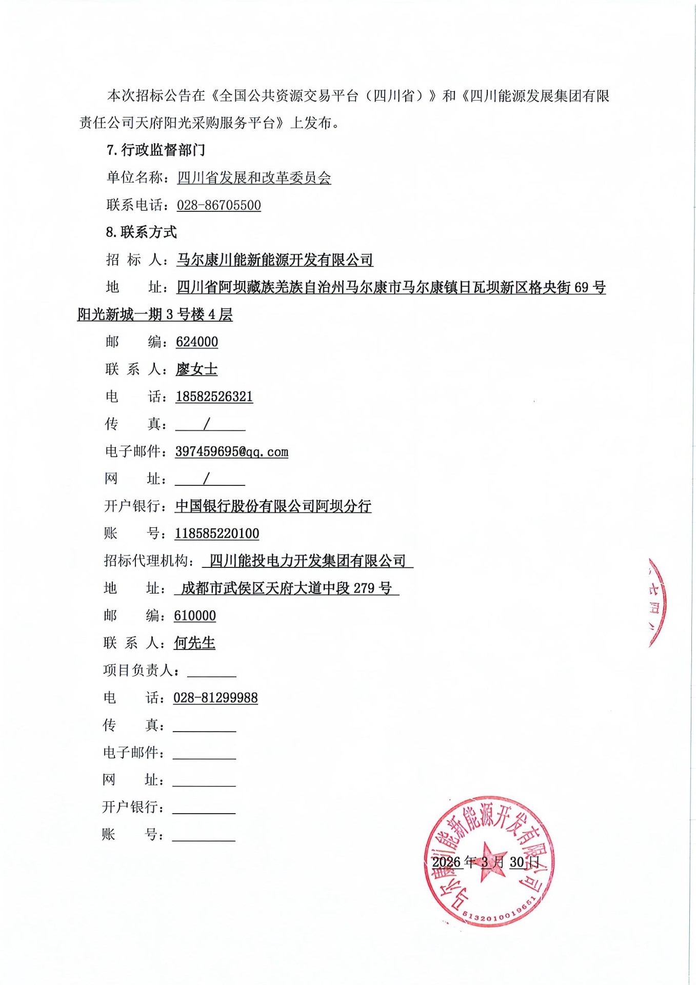 招 标 人:马尔康川能新能源开发有限公司