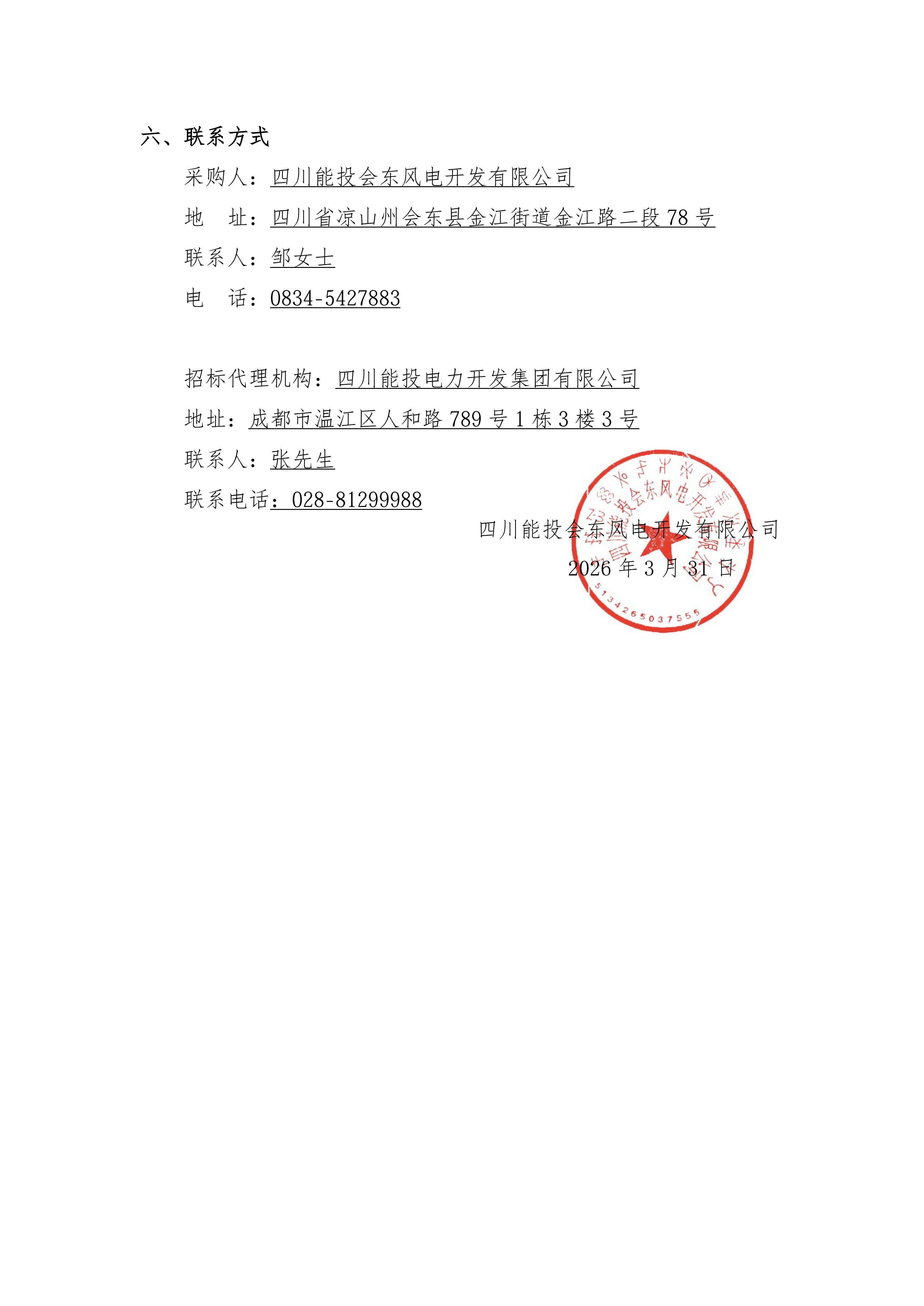 采购人:四川能投会东风电开发有限公司