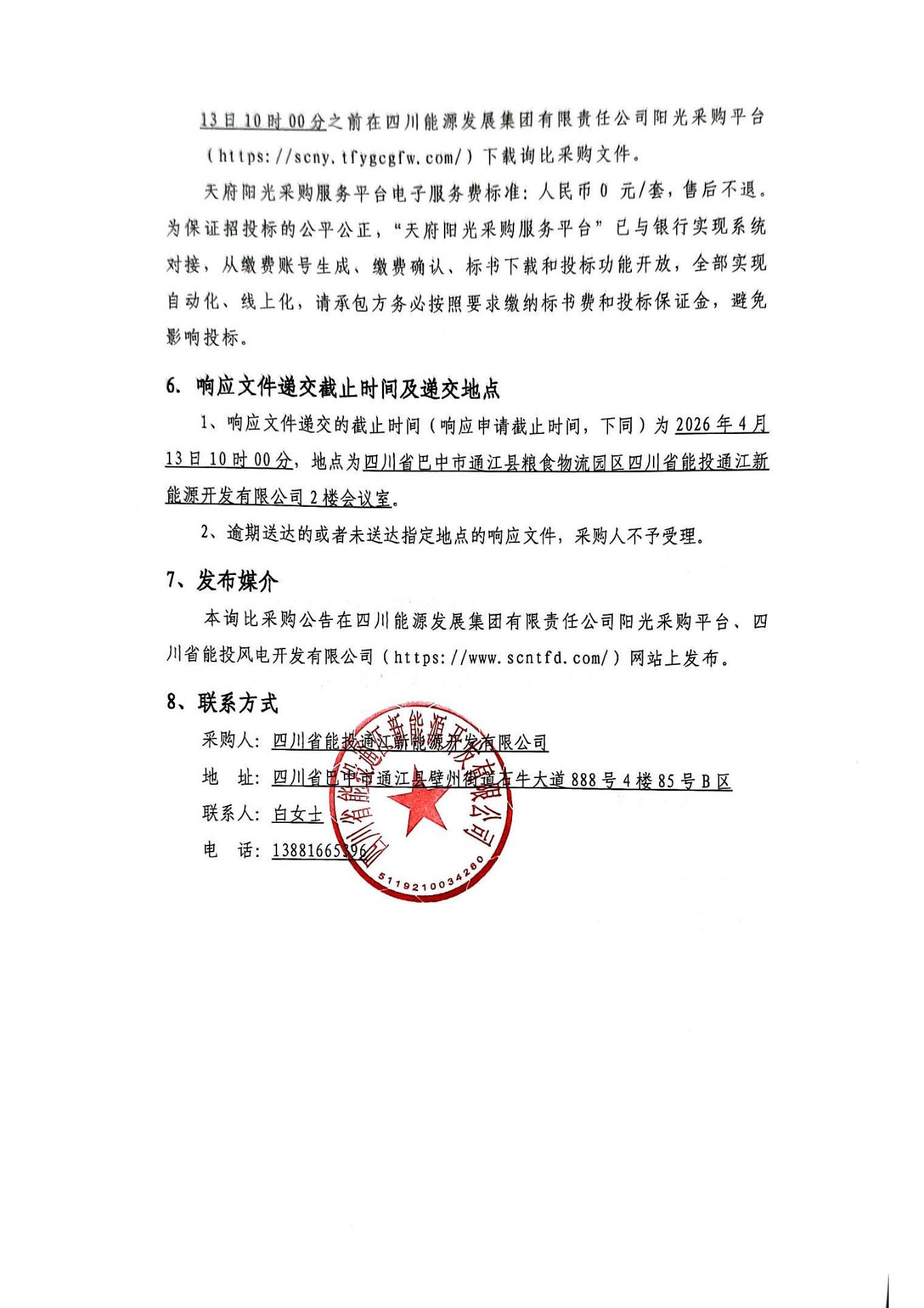 请符合要求且有意参加本项目询比采购的潜在供应商于2026年4月 13日10时00分之前在四川能源发展集团有限责任公司阳光采购平台(https://scny.tfygcgfw.com/)下载询比采购文件。