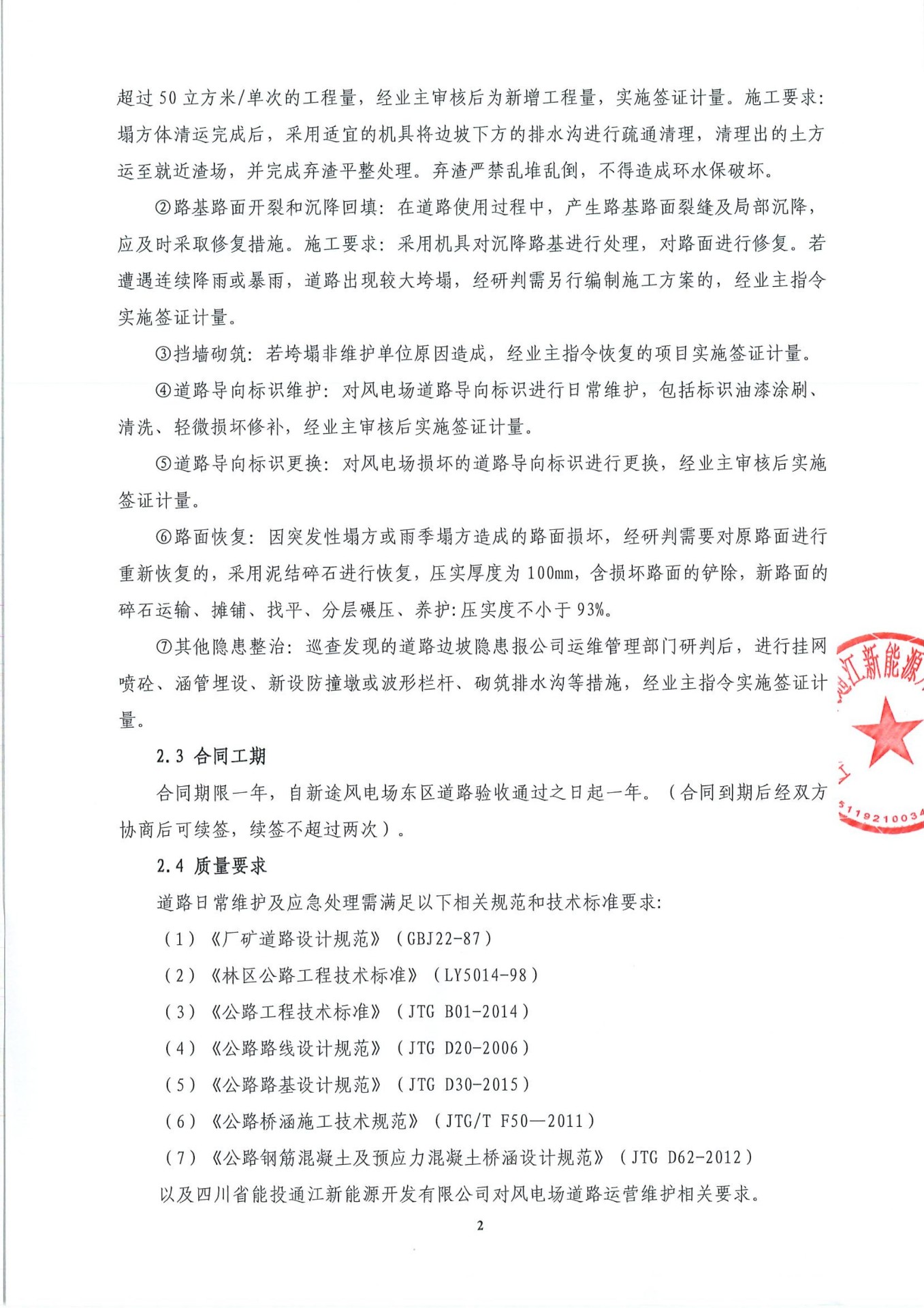 以及四川省能投通江新能源开发有限公司对风电场道路运营维护相关要求。