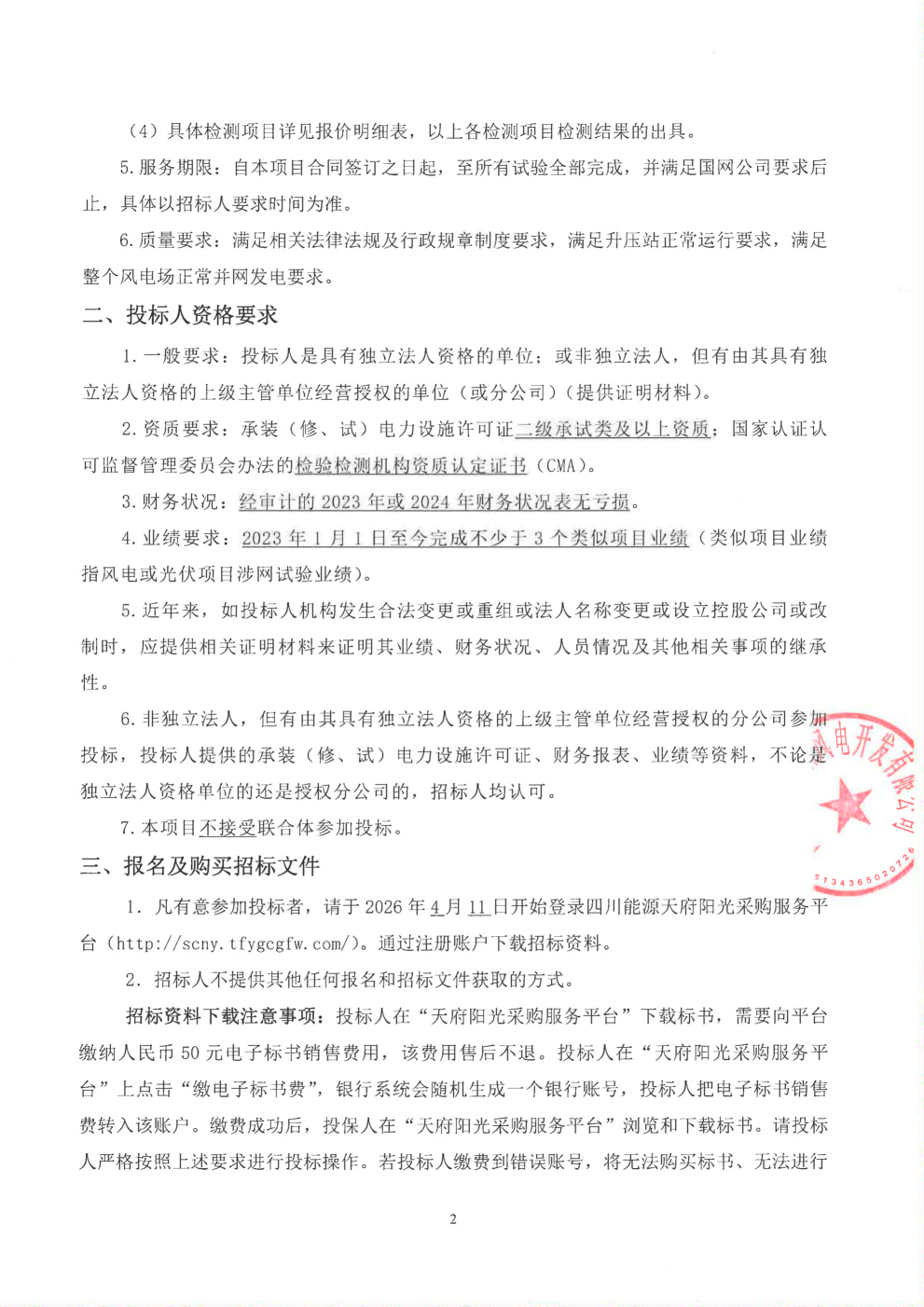 1.项目名称:凉山美姑四季吉二期、沙马乃托二期风电项目新机并网前设备涉网检测技术咨询服务项目。