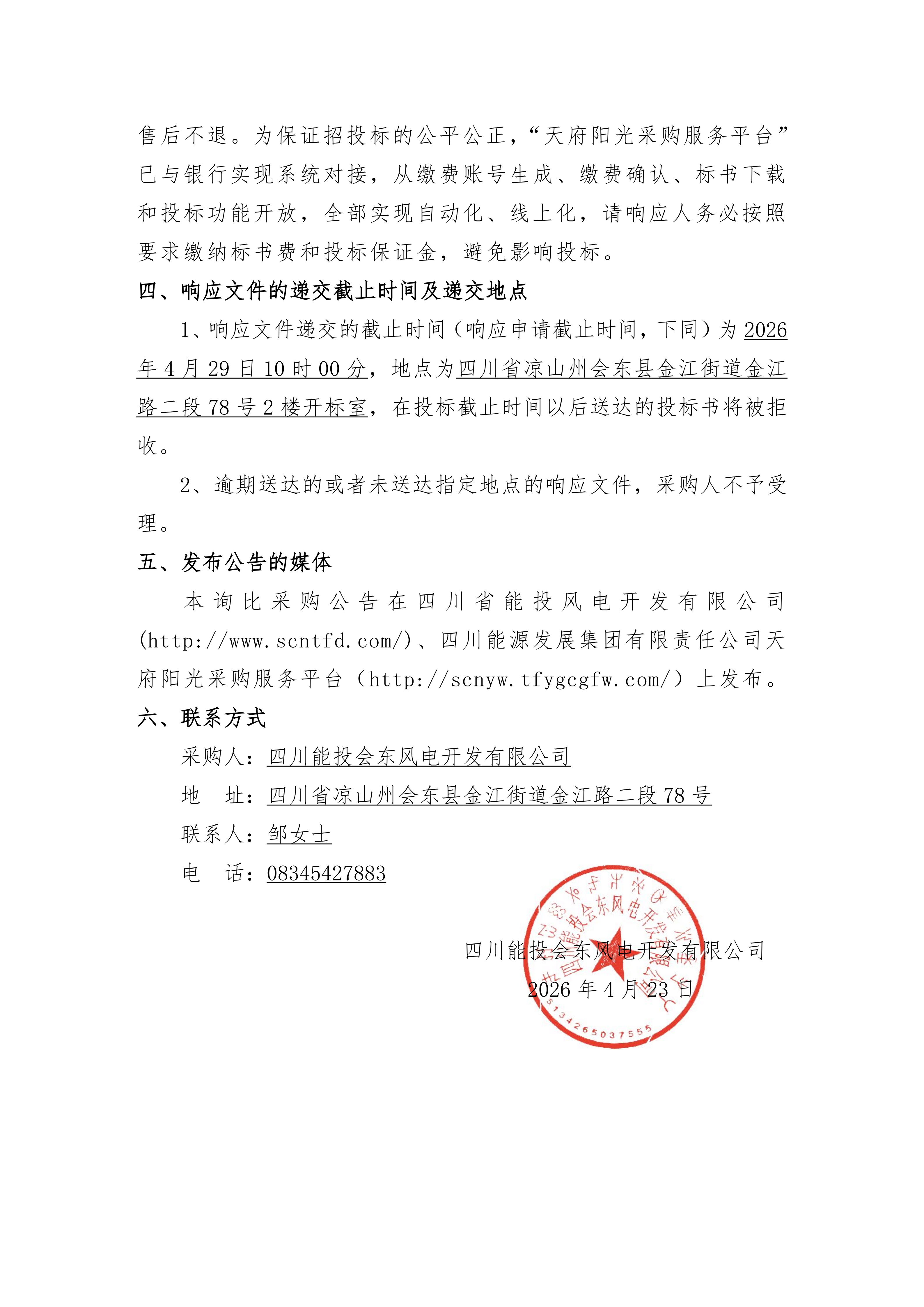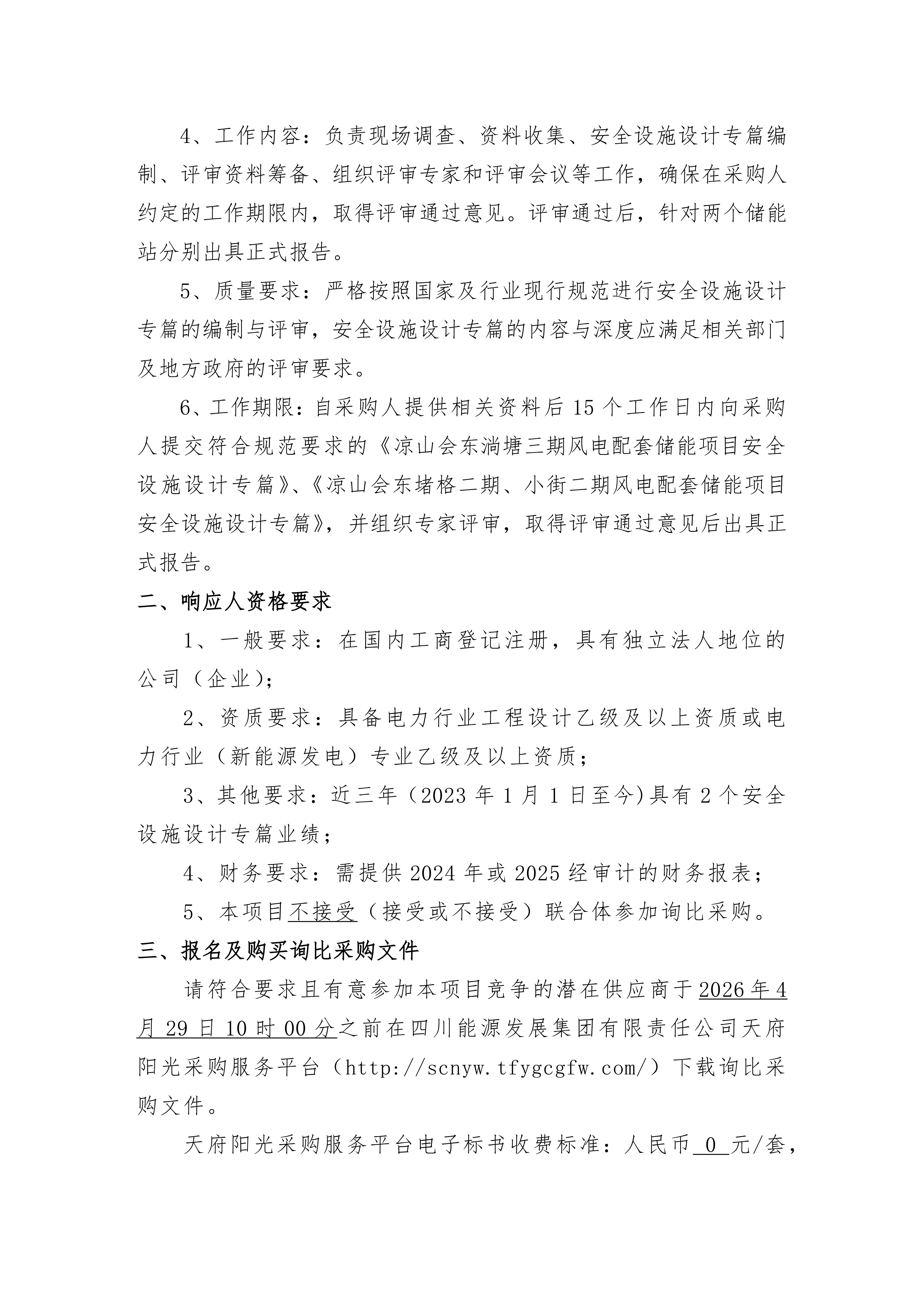 请符合要求且有意参加本项目竞争的潜在供应商于2026年4月29日10时00分之前在四川能源发展集团有限责任公司天府阳光采购服务平台(http://scnyw.tfygcgfw.com/)下载询比采购文件。