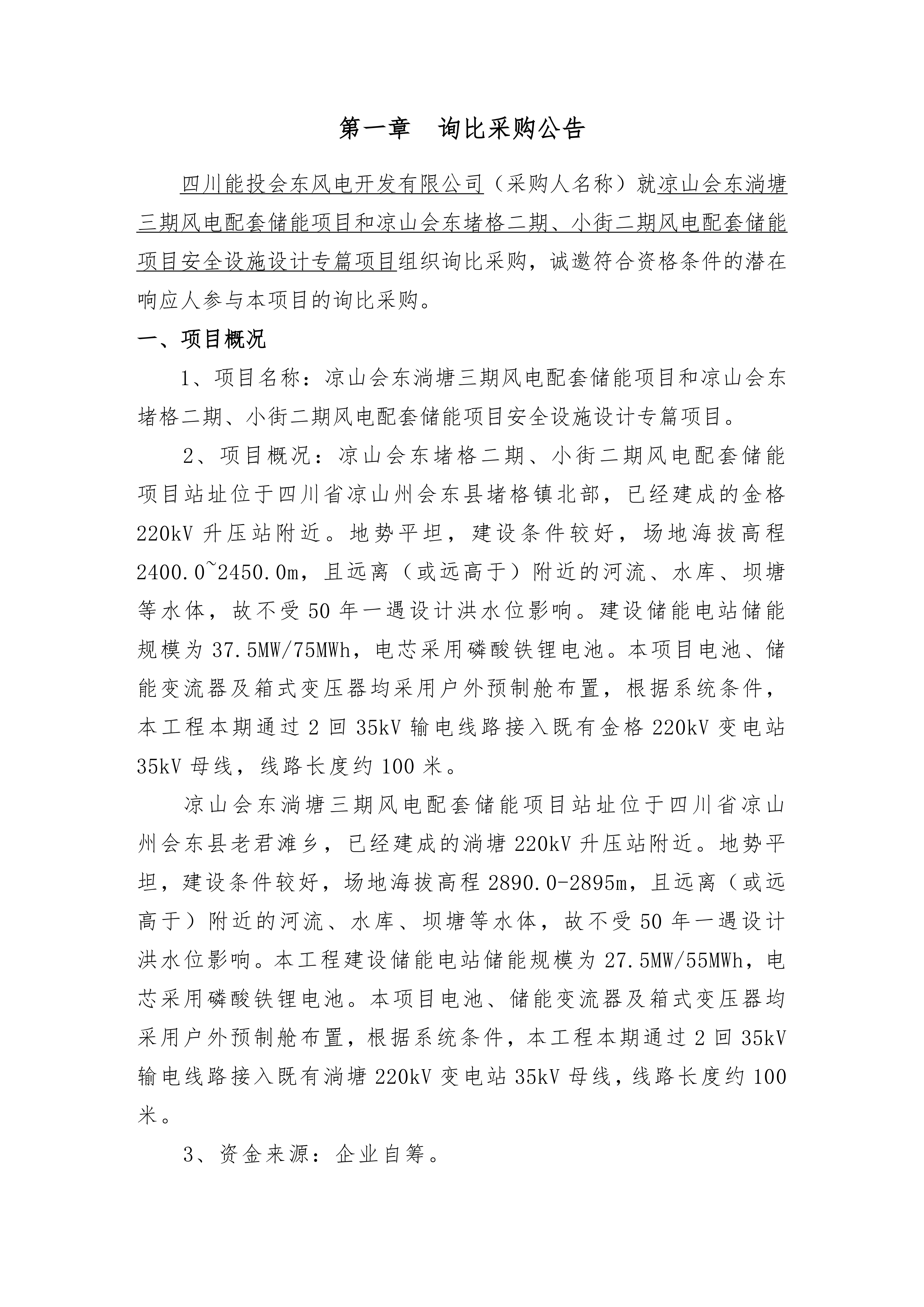 四川能投会东风电开发有限公司(采购人名称)就凉山会东淌塘三期风电配套储能项目和凉山会东堵格二期、小街二期风电配套储能项目安全设施设计专篇项目组织询比采购,诚邀符合资格条件的潜在响应人参与本项目的询比采购。